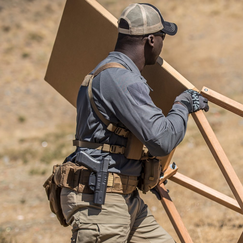 COMPETITION Modular Belt Sleeve® ist eine der beiden Plattformen des COMPETITION Sets. Sie wurde als zusätzliche Hülle für den 45 mm breiten COMPETITION Nautic Shooting Belt entwickelt, funktioniert aber auch mit allen anderen Waffengürteln bis zu 45 mm Breite. Die Hülle ist vollständig mit dickem, strapazierfähigem EVA®-Schaumstoff gepolstert, so dass Sie keine Unannehmlichkeiten durch den Waffengürtel oder scharfe Kanten der Taschen spüren. Auf der Oberfläche befinden sich lasergeschnittene modulare Plattformen, die mit dem MOLLE/PALS-System kompatibel sind. Die Plattformen sind in Abschnitte unterteilt, so dass Sie in der Lage sind, Ihren Gürtel außerhalb für die Montage von Holster oder Gürtel montierbaren Taschen zu verwenden. An den Seiten befinden sich zwei horizontale Schlitze an der Unterseite zur Befestigung von Hüftholstern oder Drop Leg Panels. Die Hülle ist profiliert und mit Mesh gefüttert, damit sie auch bei längerem Gebrauch bequem sitzt. Vier flache Paracord-Schlaufen ermöglichen die Befestigung eines beliebigen Gurtzeugs.