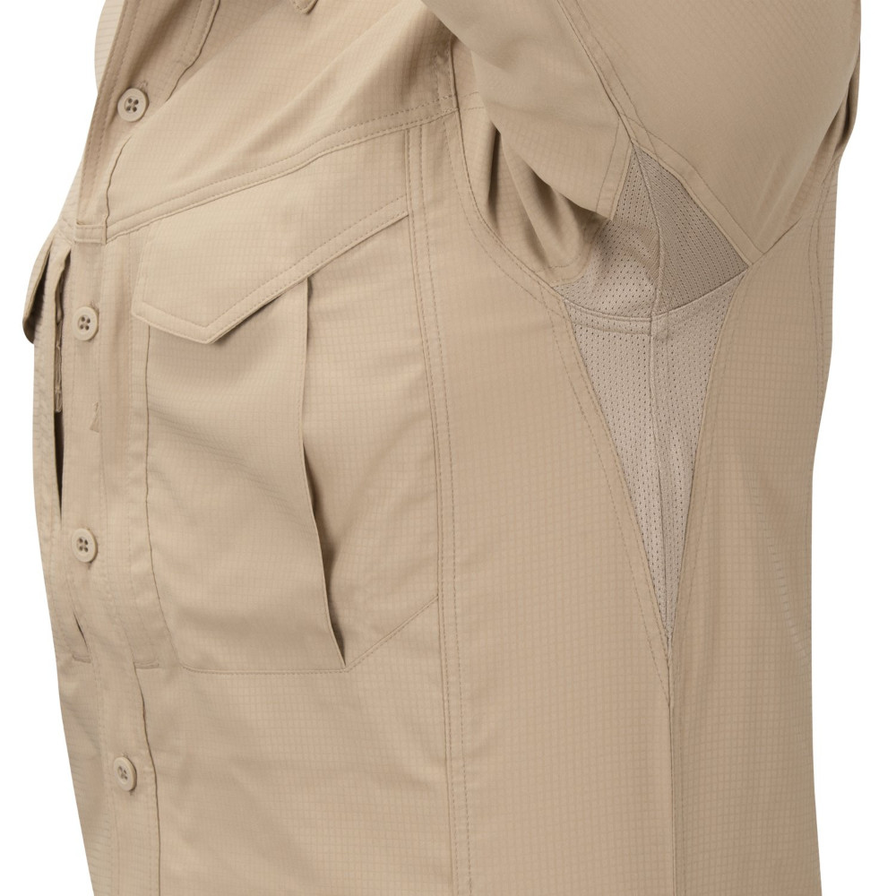 Egal, ob Sie sich auf einer Safari oder in einem tropischen Land befinden, oder ob es draußen einfach nur brütend heiß ist, Sie sollten immer in der Lage sein, stilvoll auszusehen, ohne Ihren Wärmekomfort zu beeinträchtigen. Aus diesem Grund haben wir uns entschlossen, unser Defender Mk2 Tropical Shirt zu entwickeln. Das Hemd ist aus schnelltrocknendem, elastischem Polyestergewebe gefertigt, das auch an den heißesten Tagen für eine gute Atmungsaktivität sorgt. Darüber hinaus bietet das UPF30-Gewebe den richtigen UV-Schutz, den man an Sommertagen so dringend braucht. Der Schnitt des Hemdes ist derselbe wie bei unseren klassischen Defender Mk2-Hemden. Das Hemd wird mit den dezenten Helikon-Tex® Knöpfen geknöpft. Auf der Brust befinden sich zwei Pattentaschen, die mit Klettbändern verschlossen werden. Darunter befinden sich zusätzliche flache Taschen, die mit YKK®-Reißverschlüssen geschlossen werden.
