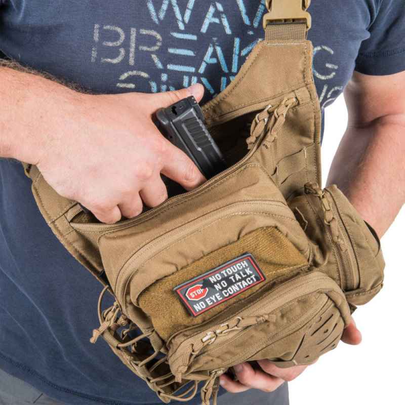 Der EDC Side Bag ist eine kompakte, universelle Tasche für die alltägliche Ausrüstung. Die Tasche hat ein geräumiges Hauptfach für größere Gegenstände und eine kleine Fronttasche mit internem Organizer. Auf der einen Seite der Tasche befindet sich eine kleine Tasche für Kleinteile und auf der anderen Seite befindet sich ein universeller, verstellbarer Wasserflaschen- / Jackenhalter. Das Front-Laserschnitt MOLLE / PALS-System bietet zusätzlichen Platz für weitere Taschen oder andere Ausrüstung. Das EDC Side Bag verfügt über eine zusätzliche, versteckte Tasche, in der eine Handfeuerwaffe in voller Größe (Pistole oder Revolver) untergebracht werden kann. Die Tasche kann auch für die Montage von vielseitig einsetzbaren Insert System®-kompatiblen Artikeln verwendet werden.