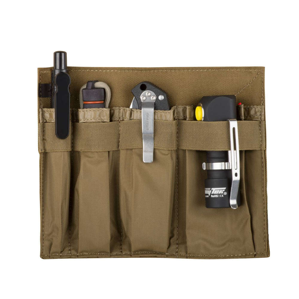 Der Organizer Insert Large ist die erweiterte Version des Universaleinsatzes für alle Produkte mit einem Klettverschluss, die mit dem Versatile Insert System kompatibel sind. Er hat vier Taschen und vier elastische Bandschlaufen.
