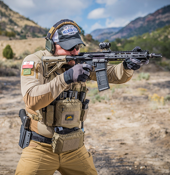 Das Range Polo Shirt® wurde von professionellen Schützen für den Schießstand entworfen. Der Stoff ist angenehm zu tragen und schnell trocknend. Die Seitenteile bestehen aus VersaStretch®, die den verschleißanfälligen Bereich vor Pistolengurt und am Gürtel befestigten Gegenständen schützen. Die Ellenbogenpartie hat Taschen für Low-Protection-Pad-Einsätze (nicht enthalten). Mesh in Achselnbereich verbessert die Atmungsaktivität. Zwei Klettflächen an den oberen Ärmeln ermöglichen eine einfache Personalisierung. Zusätzlich gibt es zwei Ärmeltaschen und eine Sonnenbrillenschlaufe.