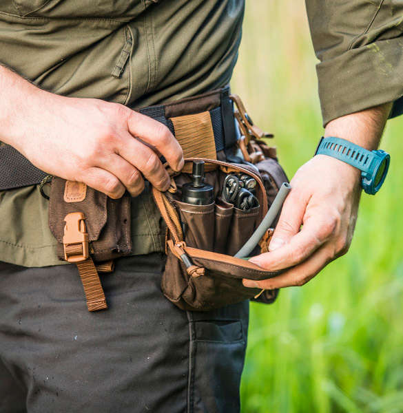 Der SERE Pouch ist eine universelle Tasche für Überlebens- und Bushcraft-Ausrüstung. Der Name bezieht sich auf das Trainingssystem SERE (Survival, Evasion, Resistance and Escape). Sie besteht aus strapazierfähigem Cordura 500D und ermöglicht die Verwendung von vier verschiedenen Montage- und Tragesystemen. Zusätzlich zum klassischen MOLLE / PALS können wir sie in einer abgesenkten Position auf Duty Belts und wie eine Gürteltasche tragen. Sie bietet Platz für die in Krisensituationen benötigten Grundausrüstung (z. B. Klappmesser, Multitool, Zunder, Taschenlampe oder Feuerzeug) und kann in Taschen für schwerere oder kleine Gegenstände verstaut werden. An den Schlaufen an den Seiten können Handschuhe befestigt werden.