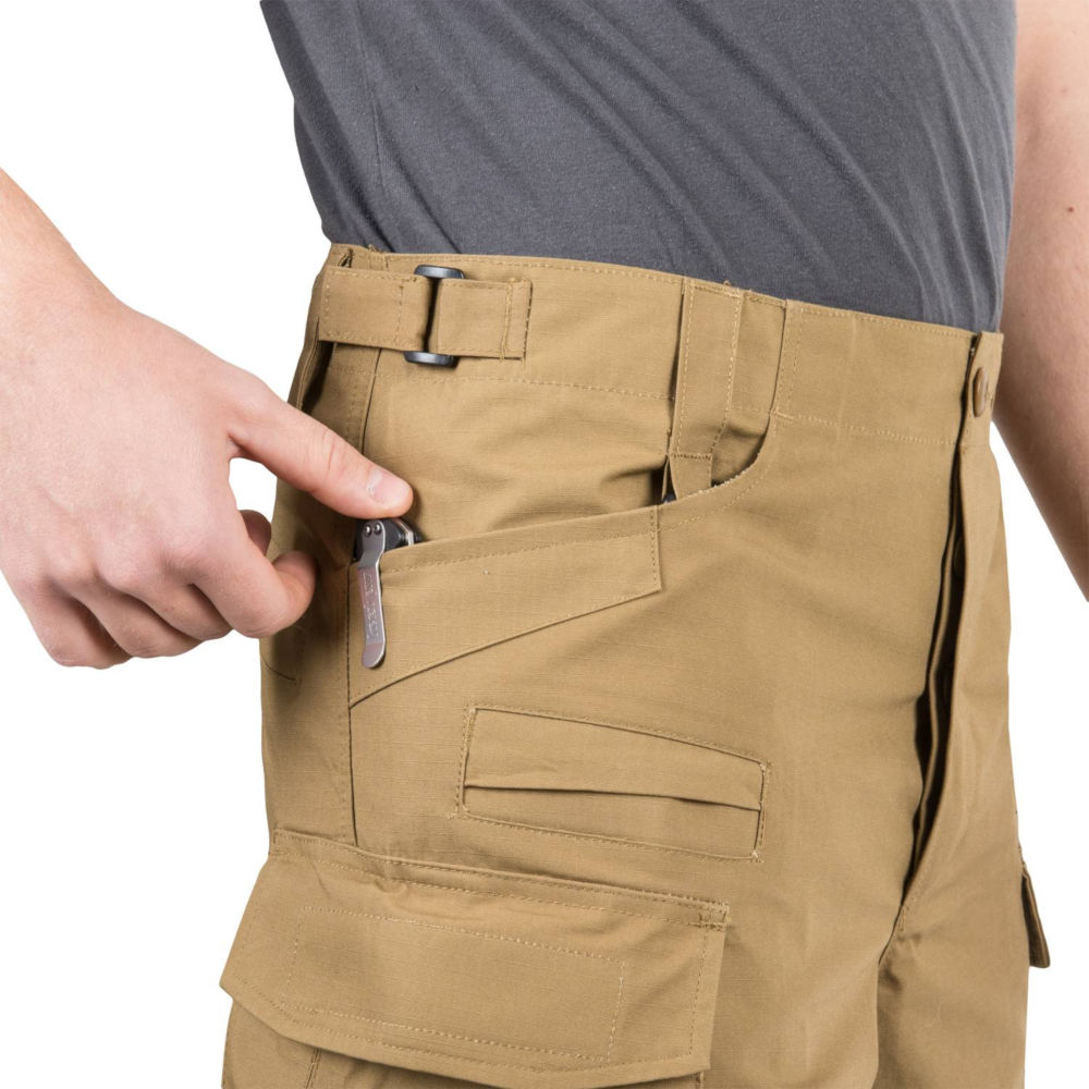 - Zusätzliche Fächer mit Gummibändern in den Beintaschen für Ersatzmagazine, Erste-Hilfe-Ausrüstung oder andere Gegenstände