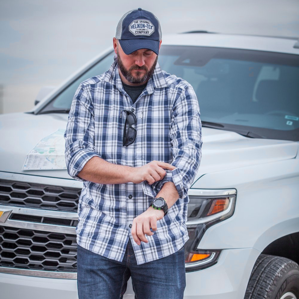 Wie der Name schon sagt, ist unser Trip Shirt eine gute Wahl, wenn Sie Ihr Zuhause verlassen. Ganz gleich, ob es sich um eine Wanderung oder eine Geschäftsreise handelt - es wird Ihnen einfach perfekt passen. Dieses leichte, atmungsaktive, geknöpfte Hemd ist aus einer Nylonmischung im beliebten Karomuster gefertigt. Zwei Brusttaschen mit Reißverschluss bieten Platz für alle wichtigen Dinge wie Reisepass, Autoschlüssel usw. Zusätzlich befinden sich in der Nähe der Brusttaschen spezielle Schlaufen für eine Sonnenbrille. An der Innenseite des rechten unteren Teils des Hemdes ist ein kleines Stück Stoff zum Abwischen der Brille eingearbeitet. Der Kragen mit zusätzlicher Falte lässt sich leicht in eine Stehversion umwandeln, um den Hals vor der Sonne zu schützen. An den Seiten befinden sich zwei Plisseetaschen für kleine Gegenstände. Die aufrollbaren Ärmel und das Netzgewebe in den Achselhöhlen machen dieses Hemd zu einer wirklich vielseitigen Wahl für jede Reise.