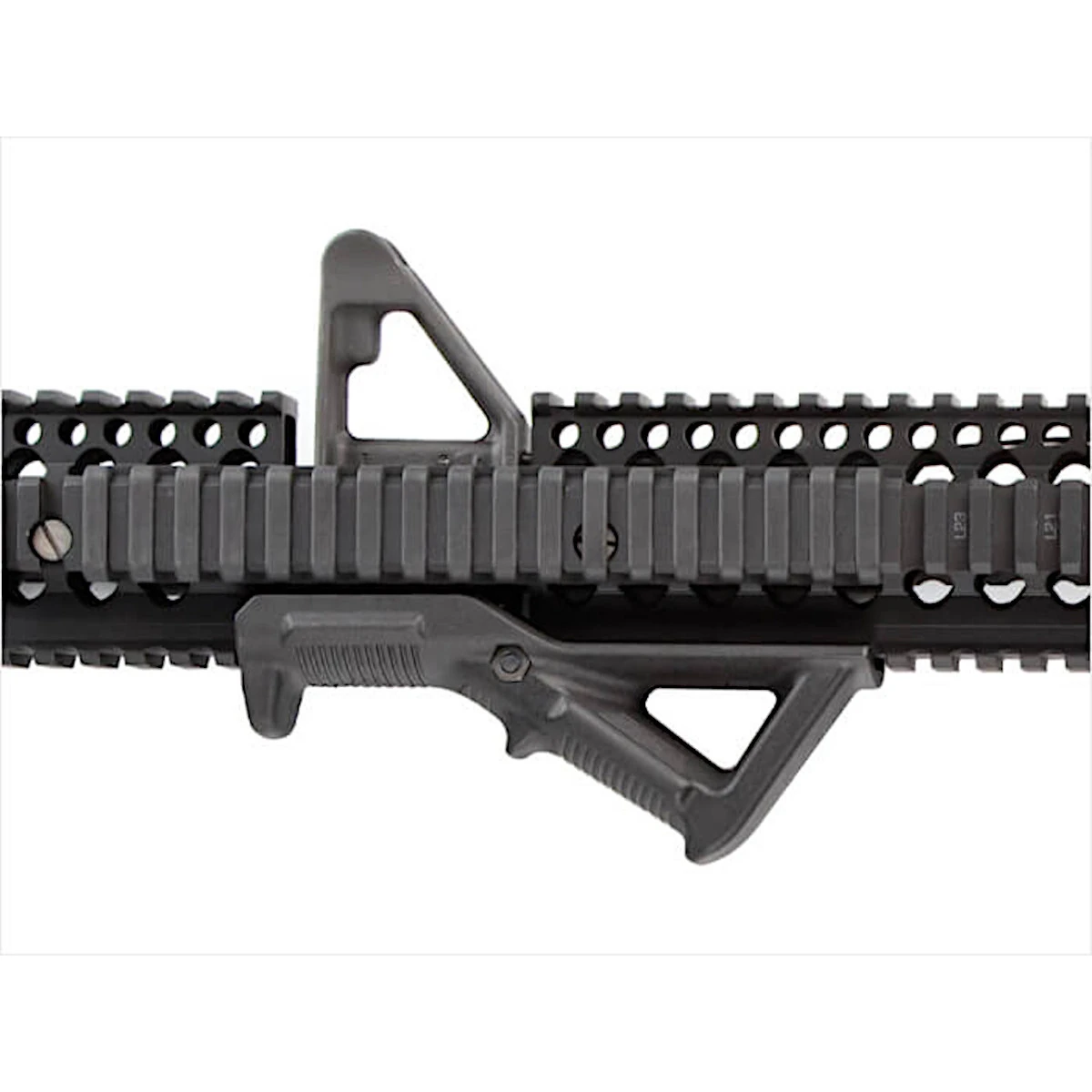 Der Magpul MAG411 AFG Angled Fore Grip ist der originale Angled Fore Grip von Magpul Industries und setzt seit Jahren den Standard für ergonomische Vordergriffe. Im Gegensatz zu klassischen vertikalen Griffen berücksichtigt der MAG411 die natürliche Körpermechanik und positioniert die Unterstützungshand hoch auf der Mittellinie des Laufs. Dadurch verbessert sich die Waffenführung spürbar, der Rückstoß wird effektiver gemindert und Folgeschüsse gelingen schneller und präziser.