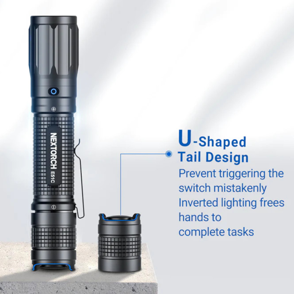 In Sachen Zuverlässigkeit setzt die NEXTORCH E51C Maßstäbe: Das robuste Gehäuse besteht aus hochwertigen Flugzeug-Aluminium, was sie besonders widerstandsfähig macht.