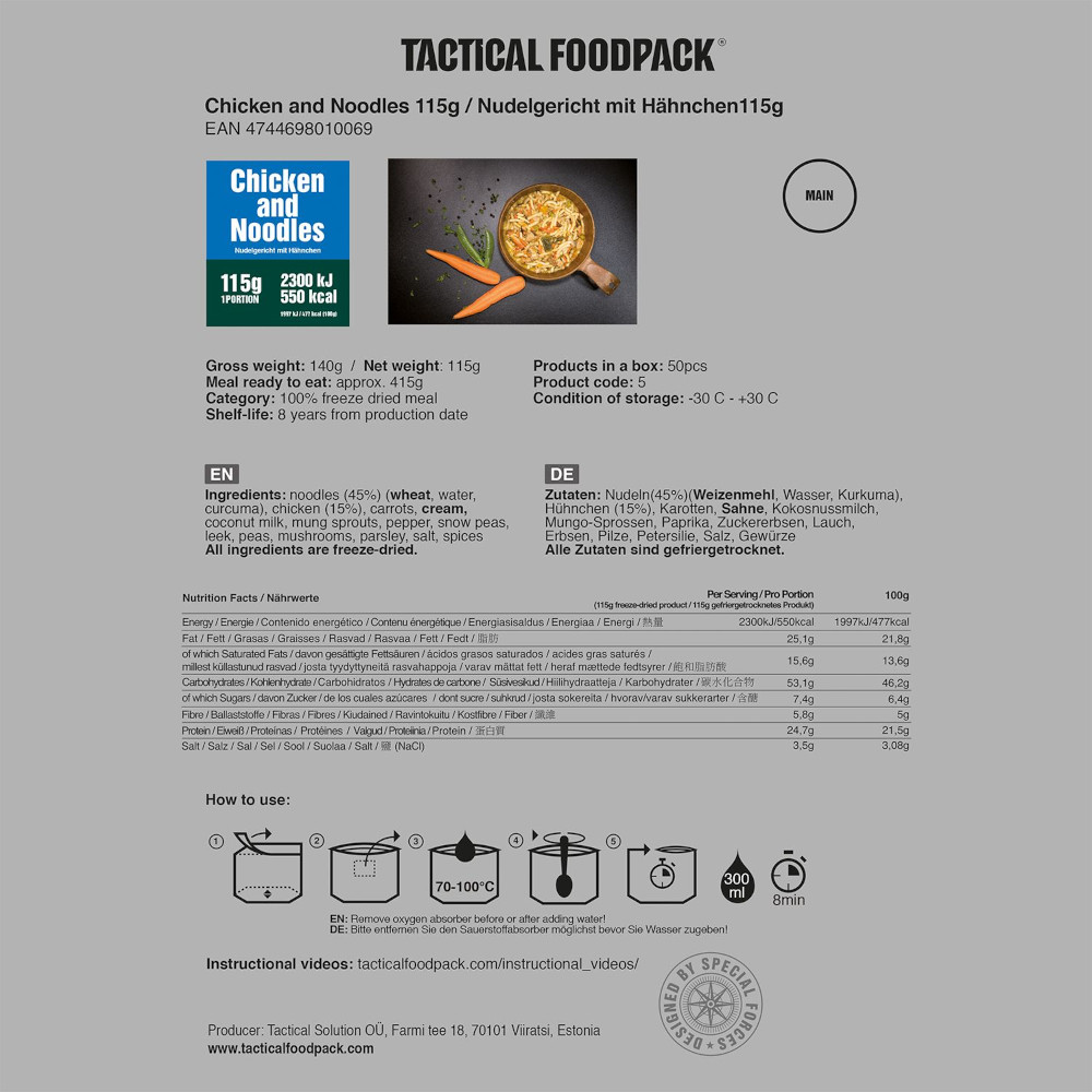 Tactical Foodpack - Nudelgericht mit Hähnchen (Hauptmahlzeit)
