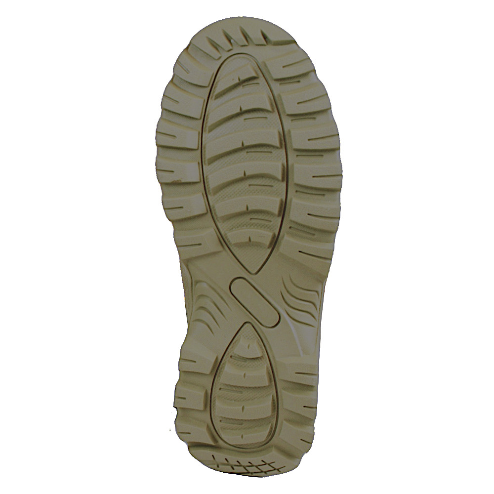 Taktische Stiefel aus Veloursleder und Cordura-Material. Bequem und robust mit rutschfesten Sohle und gepolstertem Schaftabschluss. Fußbett mit herausnehmbarer EVA-Einlegesohle, atmungsaktiv und luftdurchlässig. Zehenkappe und seitliche Verstärkung für mehr Stabilität und Schutz des Fußes. 7-Loch-Speed Lace-Schnellschnürsystem und zusätzlicher seitlicher YKK-Reißverschluss zum schnellen Anziehen der Stiefel.