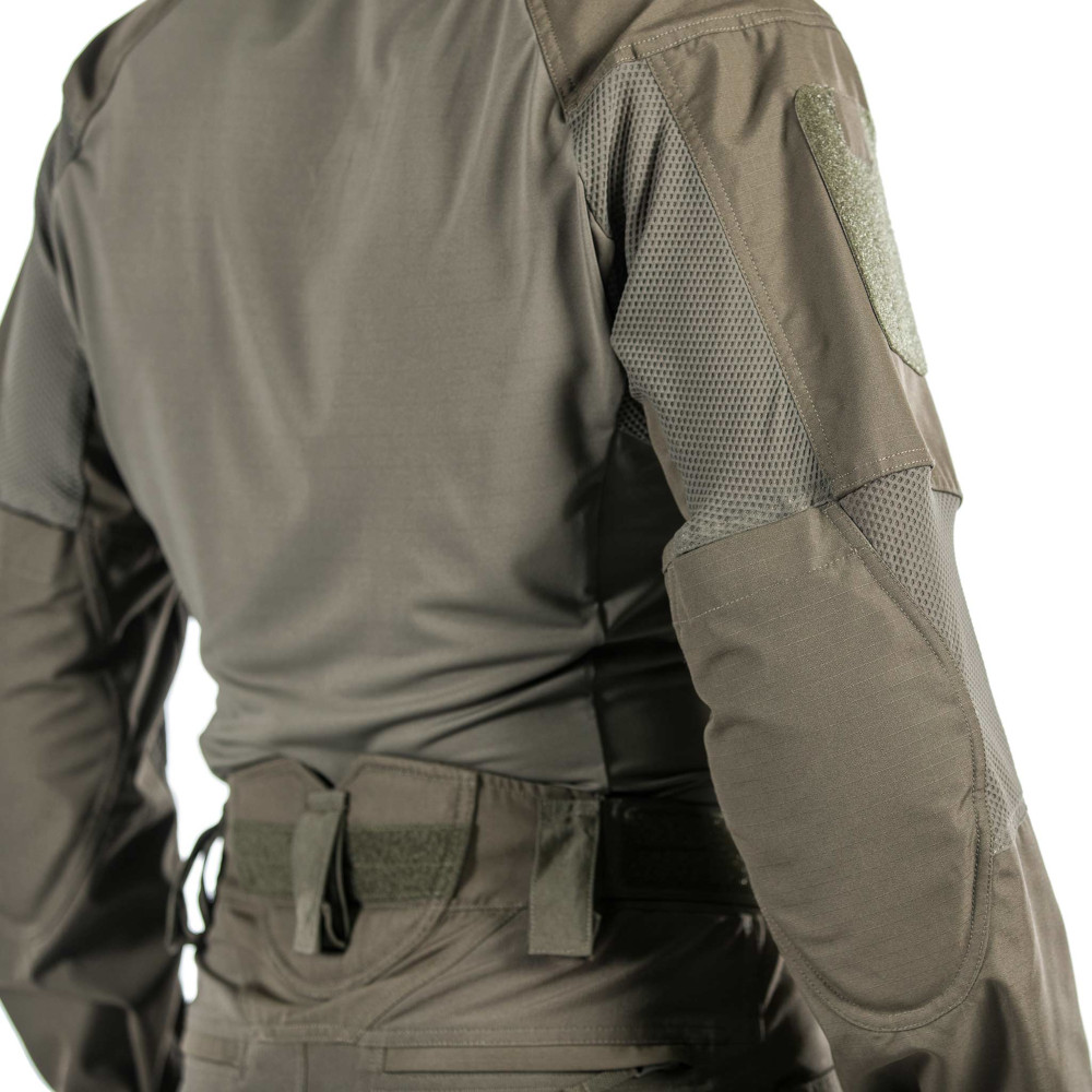 Dank des hybriden Materialdesigns zeichnet sich dieses Combat Shirt durch extreme Atmungsaktivität, feuchtigkeitsableitende Eigenschaften und Robustheit aus. Es besteht aus einem neuartigen Torso-Strick, der sich durch sein geringes Gewicht wie eine zweite Haut anfühlt. Zudem trocknet es extrem schnell, so dass du dich den ganzen Tag über auf einen hohen Tragekomfort verlassen kannst, während das robuste Ripstop-Gewebe den Belastungen des Kampfes standhält.