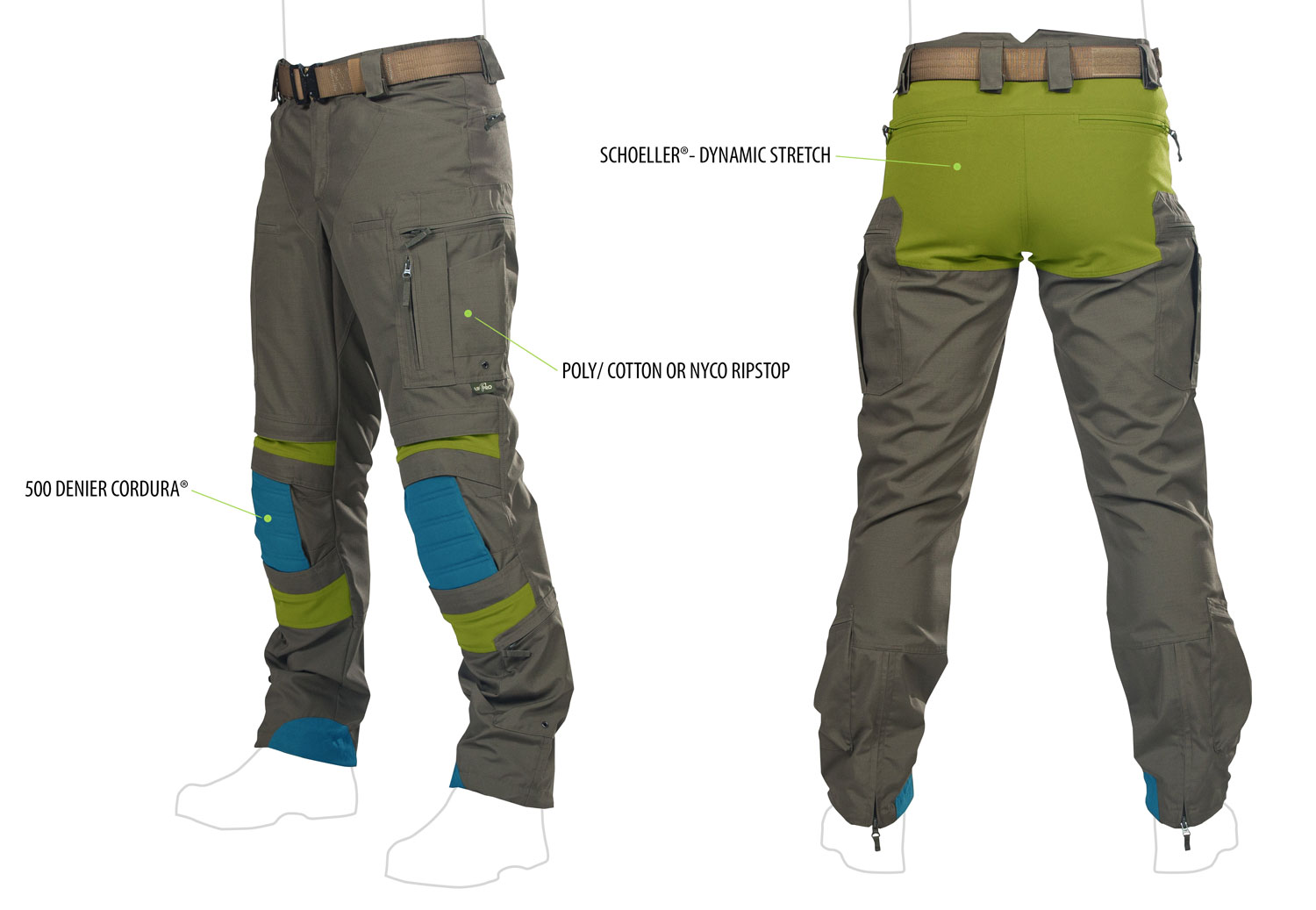 - CORDURA® Verstärkungen im Hosenbein Saum und Kniebereich