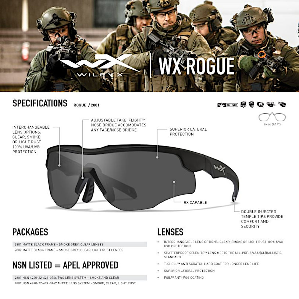 Wiley X - WX Rogue COMM Grey/Clear/Light Rust Matte Black Frame