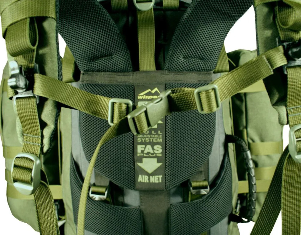 Der Hauptvorteil des Raccoon 65 Rucksacks ist das voll einstellbare FAS Plus ergonomische militärische Tragesystem. Das System ermöglicht es, den Rucksack während der Fahrt je nach Abstiegs- oder Aufstiegswinkel anzupassen. Diese Funktion ist auch hilfreich, wenn Sie zusätzliche Ausrüstung wie eine taktische Weste oder einen Plattenträger tragen.