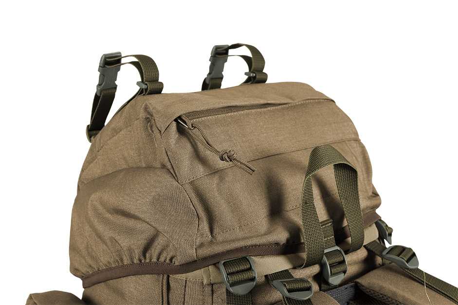 Zahlreiche Schnellverschluss-Kompressionsriemen ermöglichen die Anpassung des Rucksacks an die Größe der getragenen Ausrüstung und verhindern, dass sie sich in der Tasche verschiebt, was unnötige Geräusche, Druckstellen und Verschiebungen des Gewichts verursachen kann.