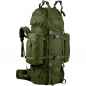 Auf der Vorderseite des Rucksacks befinden sich mehrere Befestigungspunkte für MOLLE-Gurte, an denen verschiedenes MOLLE-Zubehör befestigt werden kann, z. B. Rucksacktaschen, Erste-Hilfe-Sets und Taschen.
