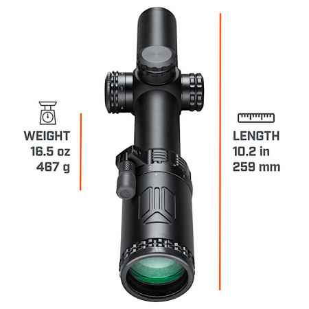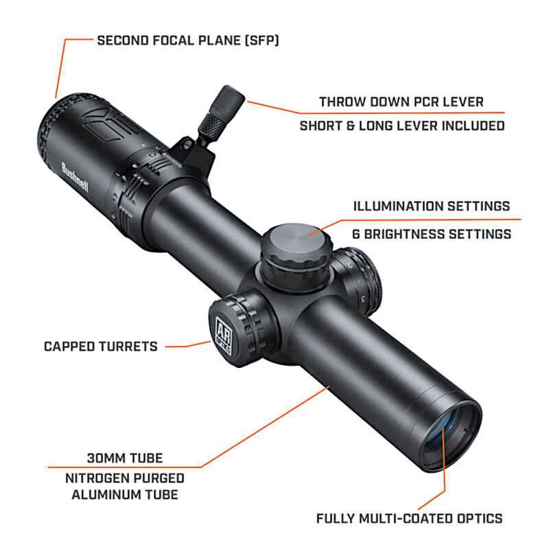 This 1-8x24mm riflescope features the illuminated BDC reticle for fast and accurate target acquisition. To speed up switching between magnification we’ve given you two Throw Down Power Change Levers (PCL) of different length. The 6 mil per revolution turrets are capped to protect them from bumps and hard use. It utilizes a 30mm main tube, illumination is provided via CR2032 battery, and it’s IPX7 waterproof.This scopes compact size and lightweight build keeps your maneuverable rifle the way you designed it and will perform the way you want.