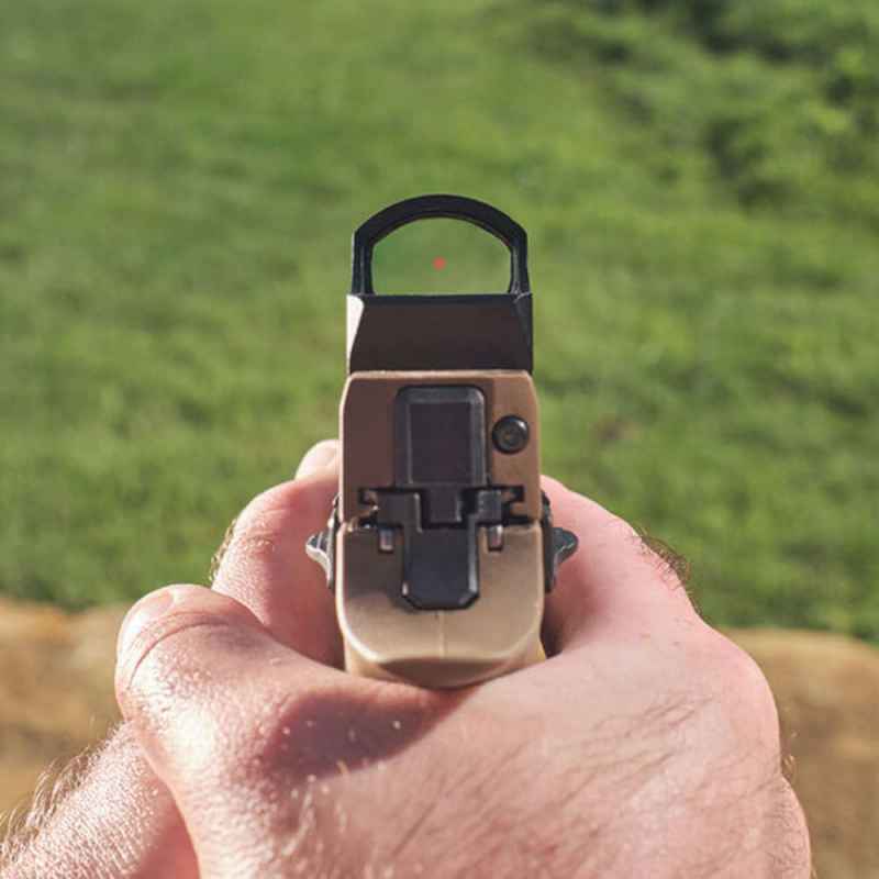 This reflex sight is equipped with an oversized lens hood that reduces glare and protects the lens from impact. True-Tone coatings reduce the blue tint and maximize light transmission.