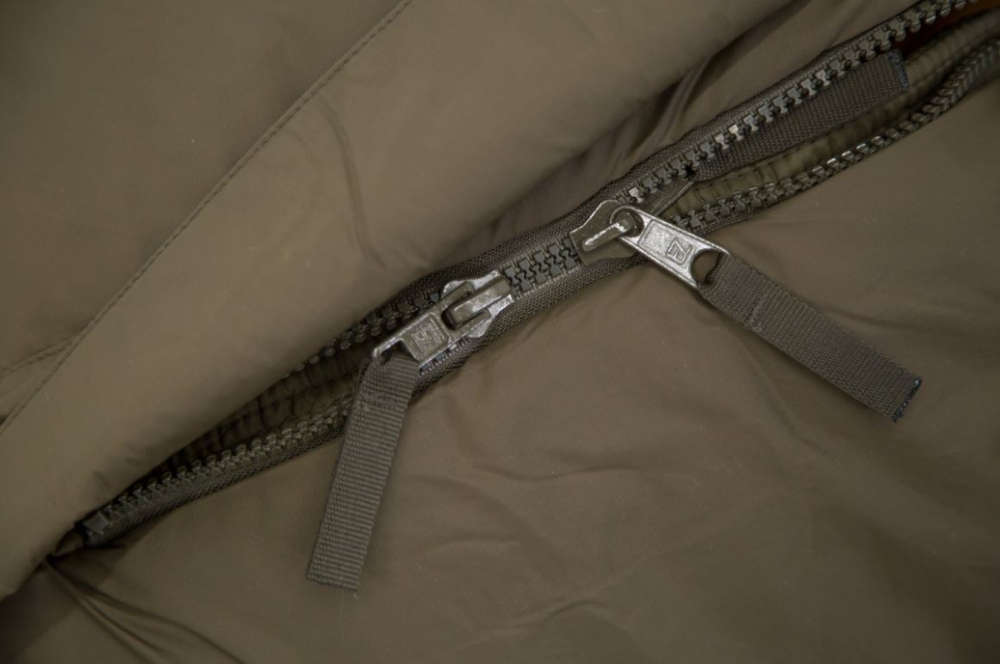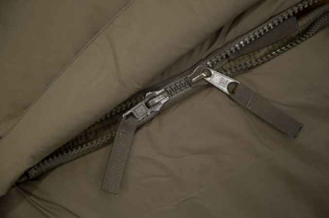 The Defense 4 comes from the military sector and is one of the best-selling 3-season sleeping bags in its class. It is characterized by the center zipper and an extremely robust and waterproof outer material. The zippered cover flap protects against wind and moisture and the integrated zipper warming strip additionally prevents heat loss. The outer shell is a super-light, highly resistant, microfibre nylon with a fine microporous coating which makes it water-repellent. There is a generous draft tube on the inside of the zipper to prevent heat loss at the zipper.