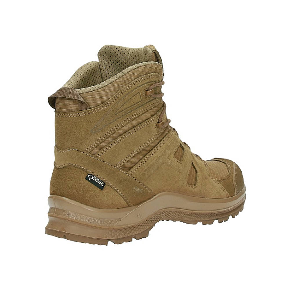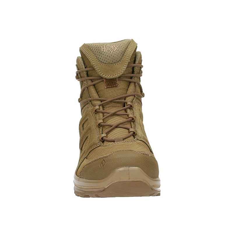 The Black Eagle Athletic 2.0 V GTX mid coyote is part of the HAIX sporting line. The combination of full-grain leather and textile gives the shoe a sporty and timeless look. It is certified as DIN EN 20347 for professional use and offers the very best of protection during military service. Due to its rigorous standards, it may also be worn as high-grade leisure footwear.