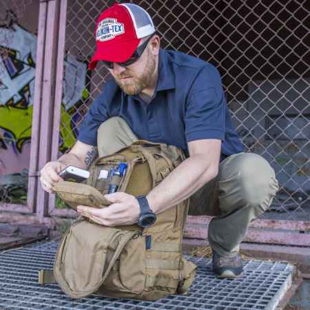 Every-Day Carry is the name for the essentials that are with us every day. Ideally they should be as simple as possible, versatile and well though-out. And that’s exactly what our EDC backpack is like – designed with everyday carry requirements in mind. The backpack has spacious, two-chamber construction. The main chamber has slick interior, without any additional pockets or organizers, only with hydration bladder hanger. Front chamber is lined with soft loop fabric, compatible with our Versatile Insert System®, which allows you to personalize your backpack as you need. Front and sides of the packs are covered with MOLLE/PALS compatible webbing. Additionally, there is a large loop panel for patches on front of the pack.