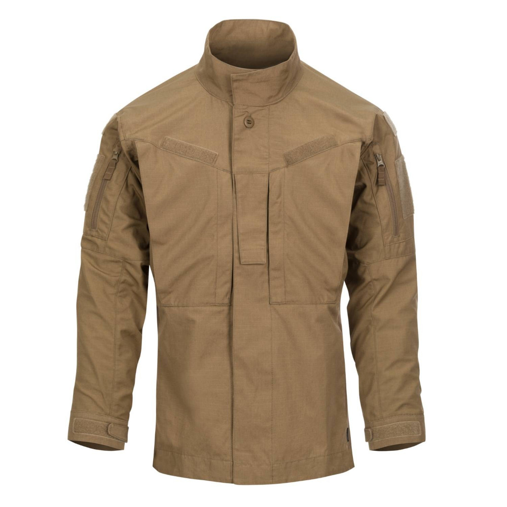 The MBDU Shirt is a part of our advanced field uniform Modern Battle Dress Uniform. This uniform was made of top quality fabrics, carefully chosen to provide not only the high durability, but also freedom of movement, which is utmost important on the battlefield. The shirt has profiled fit with side stretchable panels made of VersaStretch® fabric. The classic collar can be easily transformed into a stand-up collar, and closed with hook&loop tape. On the chest there are two zippered pockets as well as loop panels for patches above them. Additionally, in the center part there is a rank tab. Mesh panels in arm pits will provide enhanced breathability. On the biceps there are zippered pockets with loops inside for dummy cording. Additionally, there are loop large loop panels for patches on biceps as well as smaller ones above them for flags or IFF patches. Canadian buttons were used for durability.