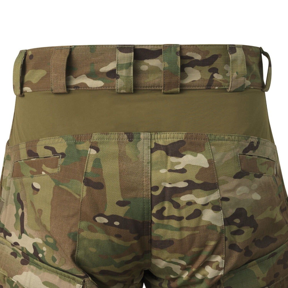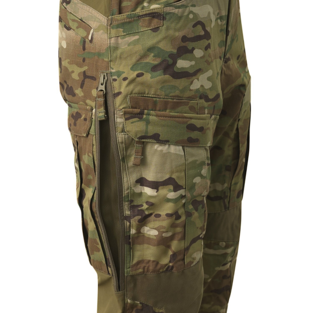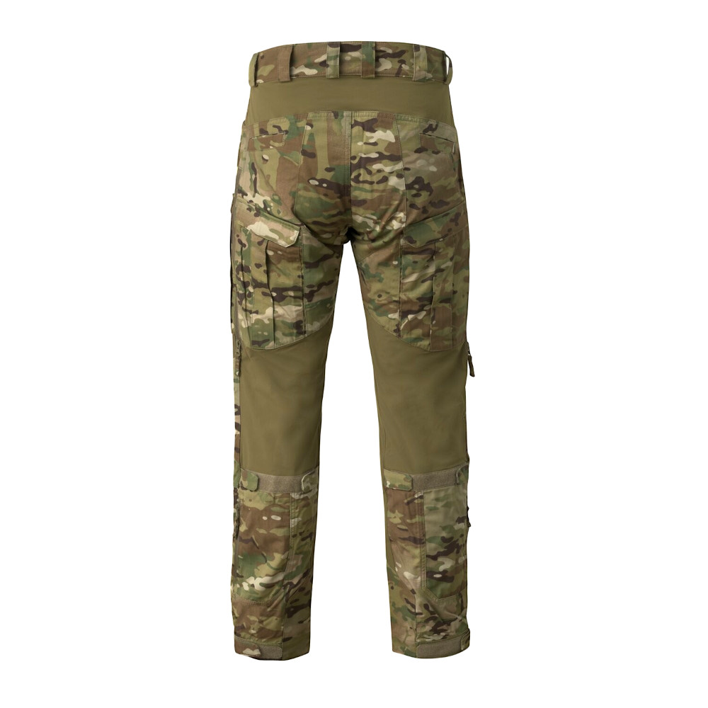 In vital areas (waist, crotch, and back of the knees) we used inserts made of Versastrech material. It dries quickly and has high breathability. The knee area is reinforced with 500D Cordura fabric with slots for protective inserts. Thanks to additional drawstrings, located under the knee and at the bottom of the leg, the pants can be easily adjusted to the leg.