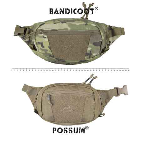 Possum is a versatile, streamlined and compact bag. It still has two zippered pockets (one on the blind side), and an Loop ID panel, same detachable hip belt/bandoleer, as well as MOLLE/PALS ribbons and internal zippered mesh pocket. Only the internal organizer is non-removable which cuts the weight down but all the key features are there. Small size, full functionality and different colors make the Possum® pack one of the indispensable urban equipment choices.