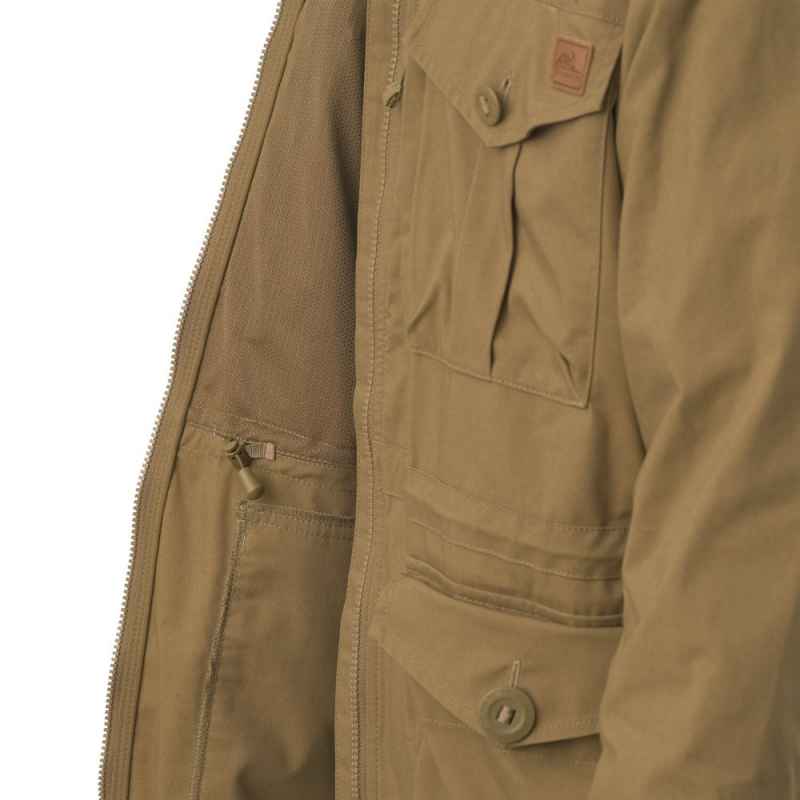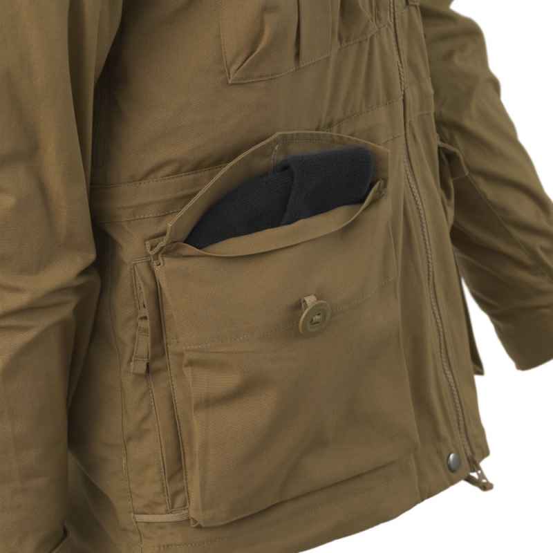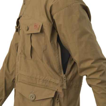 The military smock jacket returns in an improved version. We preserved classic elements but enriched them, so the vintage style goes hand in hand with functionality. The SAS Smock is fully zipped and fills the gap between two anoraks in the Helikon-Tex offer: the heavier and more advanced Anorak Pilgrim Jacket, and the lighter Anorak Woodsman Jacket. The whole smock is made of Duracanvas material suitable for waxing and increases protection against light rain and snow.