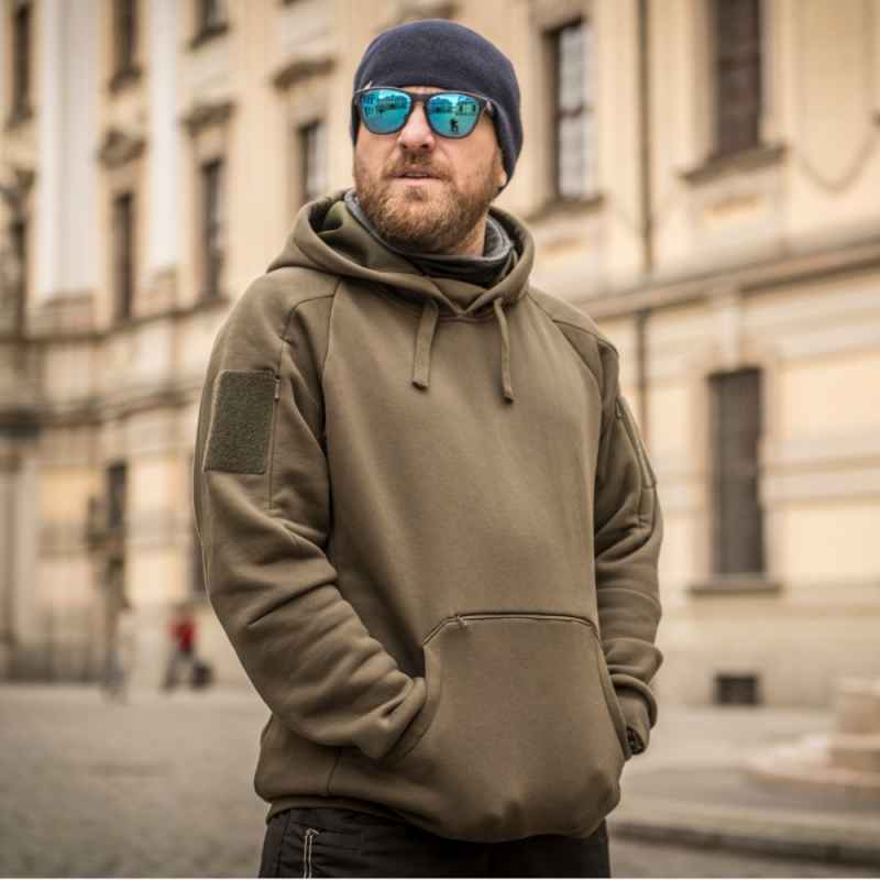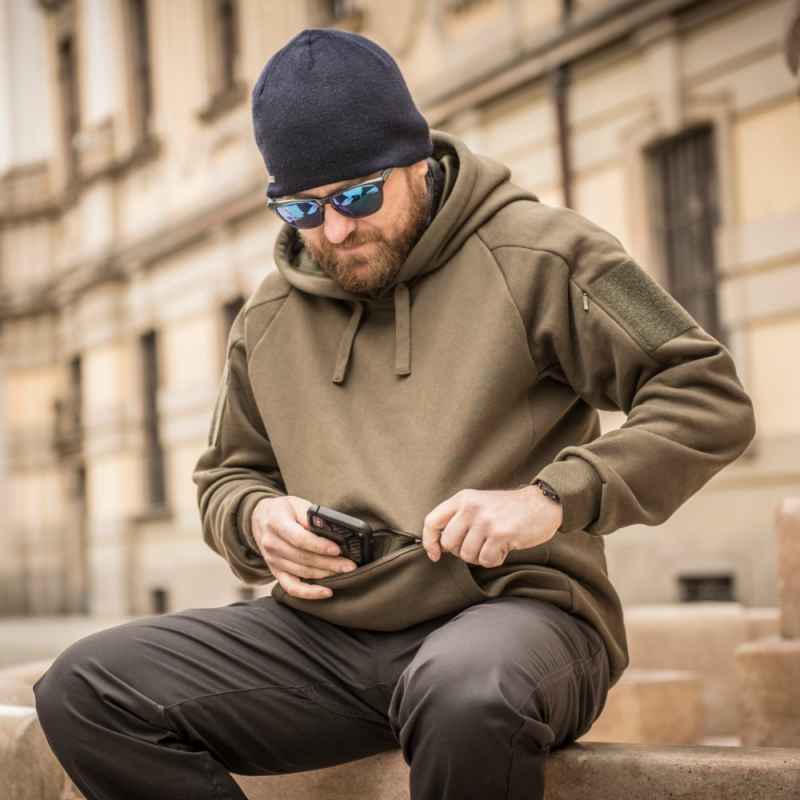 Urban Tactical Hoodie Lite (Kangaroo) is designed for covert operations in an urban environment. It will also be appreciated though by those who are looking for classically tailored clothes that allow comfortable carrying of everyday equipment.Due to the use of flexible fabric, the hoodie will not restrict movement, and smaller pockets placed inside the kangaroo pocket will allow you to organize your equipment and protect it from getting lost during the action. Above the main pocket there is a zippered pocket, which is perfect for carrying documents or a wallet. On both arms there are discreet pockets for small items and loop panels to which you can attach patches.The blend of cotton and polyester we used, makes the hoodie dry quickly, so it will be just fine for workouts on colder days.