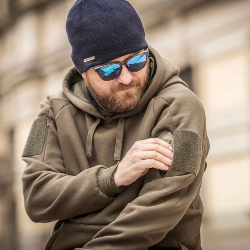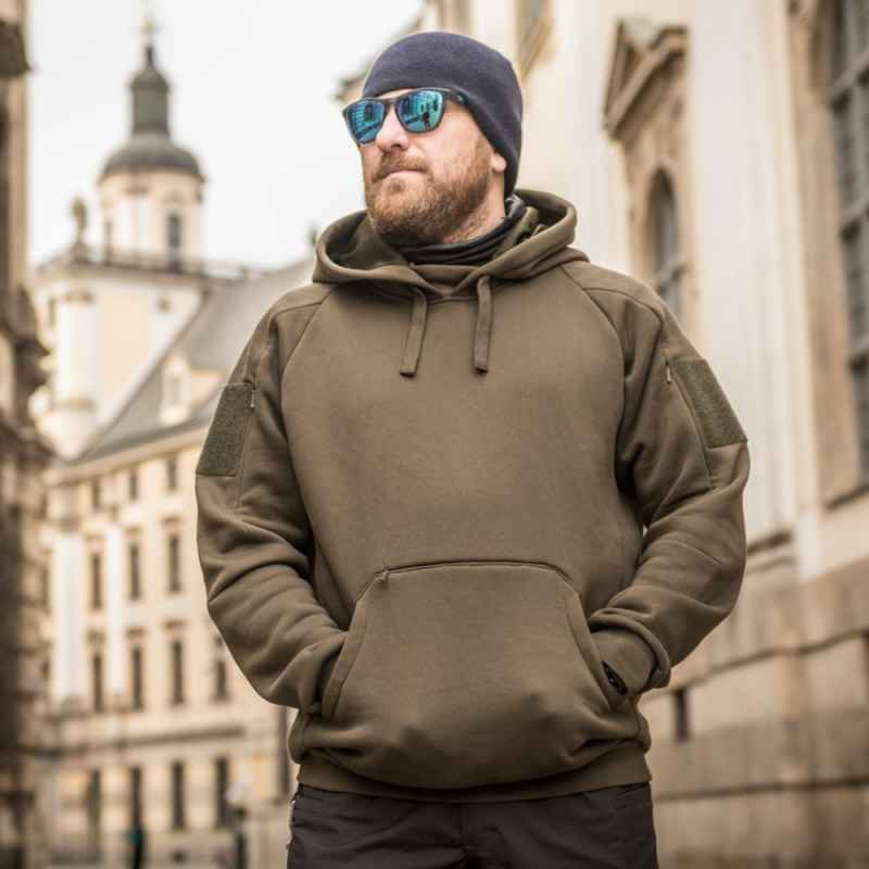 Urban Tactical Hoodie Lite (Kangaroo) is designed for covert operations in an urban environment. It will also be appreciated though by those who are looking for classically tailored clothes that allow comfortable carrying of everyday equipment.Due to the use of flexible fabric, the hoodie will not restrict movement, and smaller pockets placed inside the kangaroo pocket will allow you to organize your equipment and protect it from getting lost during the action. Above the main pocket there is a zippered pocket, which is perfect for carrying documents or a wallet. On both arms there are discreet pockets for small items and loop panels to which you can attach patches.The blend of cotton and polyester we used, makes the hoodie dry quickly, so it will be just fine for workouts on colder days.