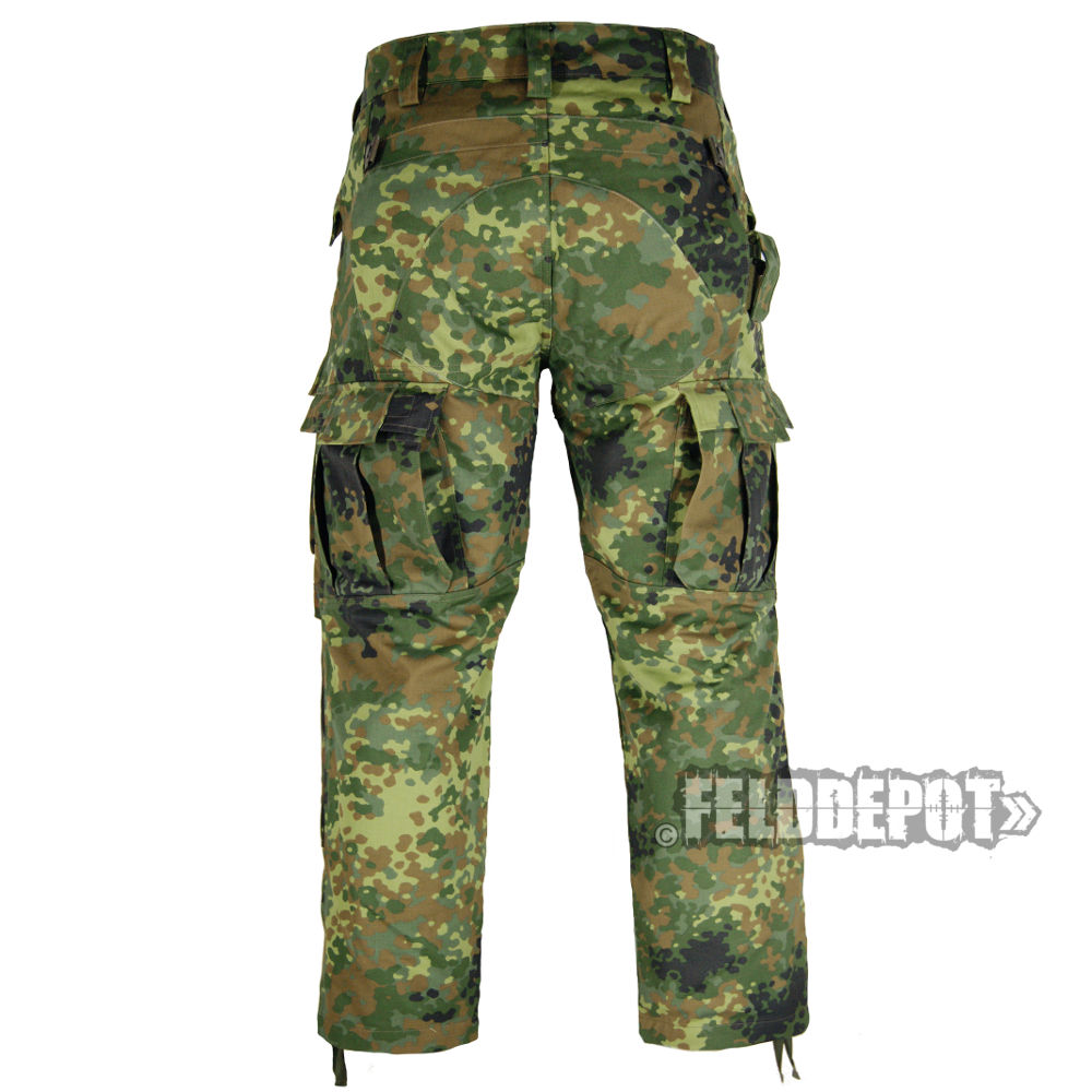 Leo Köhler Combat Pants were specially developed for use in battle to meet the special requirements in combat. The arrangement of the cargo pockets allows easy access even in a sitting position e.g. in a vehicle. The wide handle straps make it easy to open the pockets even with gloves. Pockets can be closed with flaps to prevent equipment loss. The flaps can also be pushed inside the pocket to keep it open. The back pockets can be expanded in volume to quickly hold objects such as magazines. Two more covered back pockets are underneath. A small side pocket is used to hold glow sticks or an additional pistol magazine. The knees and buttocks are reinforced. Leo Köhler Combat pants are the perfect combination of function, material and workmanship.