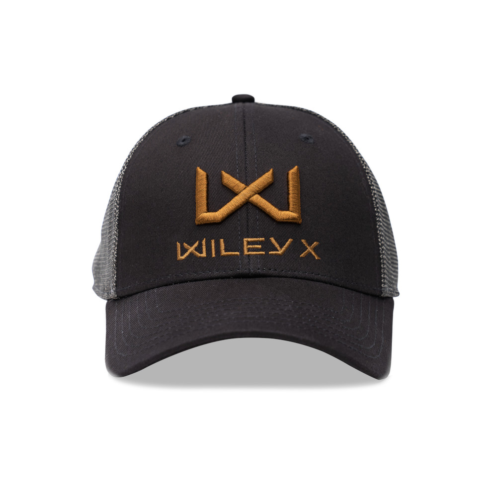 The trucker cap features a mesh, front, and visor design in an entirely dark grey color for a cool and sleek look. On the front center, a tan Wiley X logo is featured, bringing the color pallet of the Army’s desert uniforms to the overall dark look of the cap.